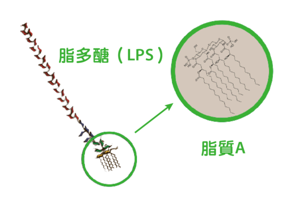 細菌死亡後,部分革蘭陰性菌的細胞壁轉為很強的內毒素,稱為脂多醣(LPS),脂多醣通過腸道被血液吸收,引起腸毒血症。脂多醣(LPS)的生理活性通常由它的脂溶性部分(稱為脂質A)介導。