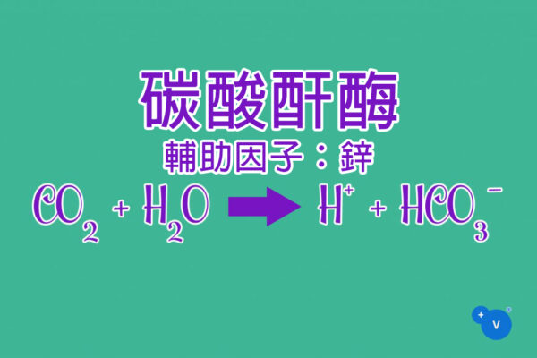 碳酸酐酶可以利用血液中的水和二氧化碳形成碳酸鹽。鋅是碳酸酐酶的輔助因子。