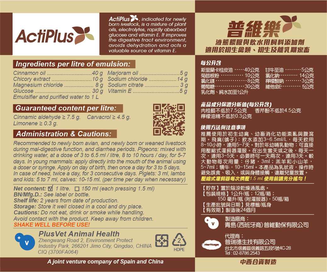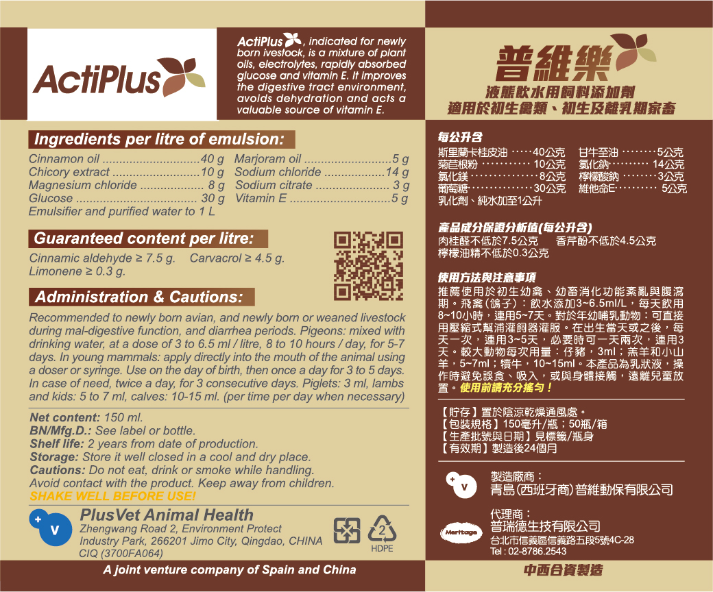 液態灌服用普維樂與飲水用飼料添加劑普維泰,兩種產品成份相同,低高含量互異,由具有殺菌功能的植物提取物精油,配伍植物源益生元,以及能被快速吸收的葡萄糖、電解質,和維生素E,互補組成,適用於禽鳥、豬隻在緊迫、免疫系統空窗脆弱期,以及初生幼鴿、幼畜及賽鴿的消化功能紊亂期。