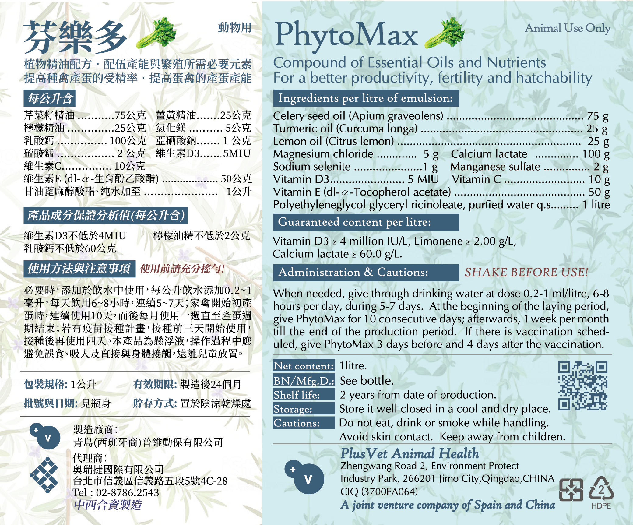 芬樂多是專為種、蛋雞設計的液態飲水用飼料添加劑,含有高生物可利用率的礦物質、維生素和數種藥理植物精油,能增強種雞、蛋雞骨骼健康、強化肝臟功能,減少蛋殼和蛋黃異常;對種雞並能改善精液品質 (維生素C, D3, E) 與提高受精率(維生素E),並能在緊迫條件下維持受精卵的高孵化率,和一日齡雛雞的健康。經常使用芬樂多可以明顯地提高種雞、蛋雞場的產蛋率,並延長產蛋週期。